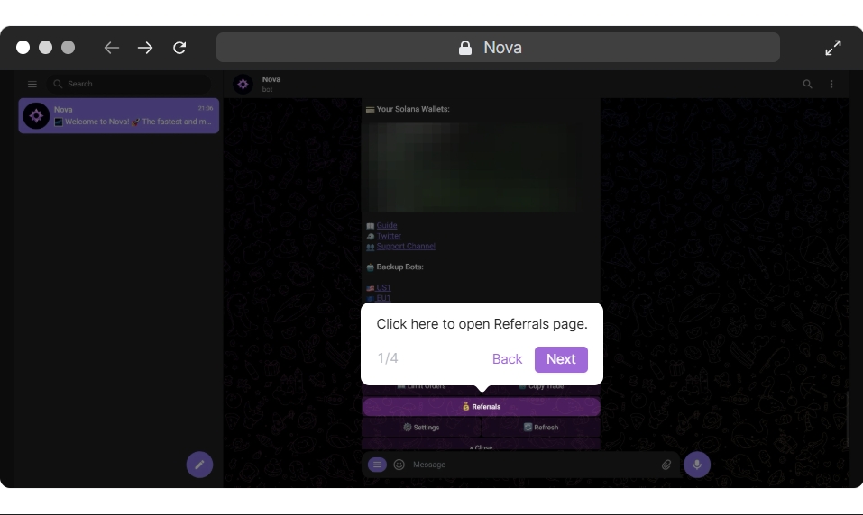 Make sure to set up the wallet where you want to receive payouts in the Nova Referrals tab.