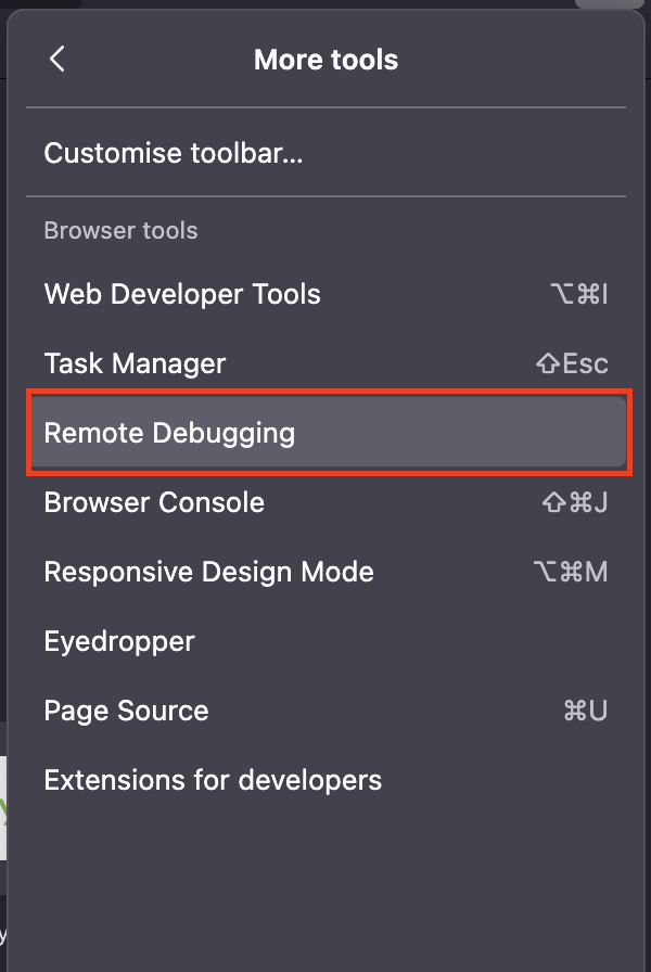 ### Navigate to Remote Debugging <a href="#navigate-to-remote-debugging" id="navigate-to-remote-debugging"></a>