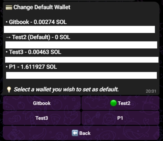 Changes the default wallet that is selected first for creation/execution of tasks.