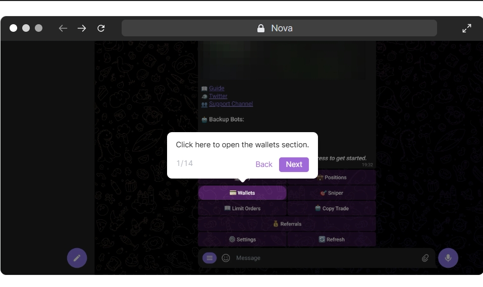 The bot will then need you to send the Private Key in order to integrate that wallet into Nova.